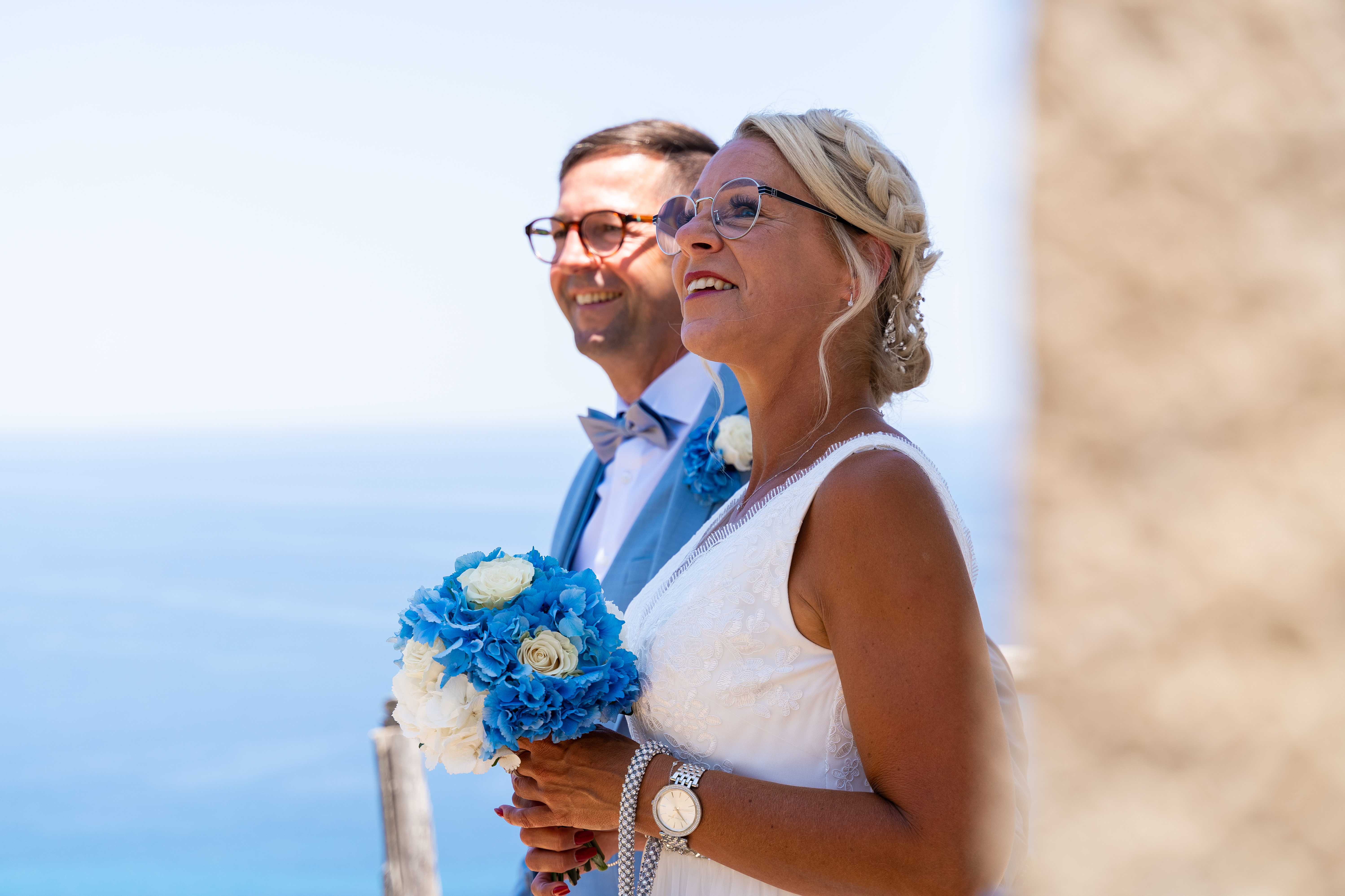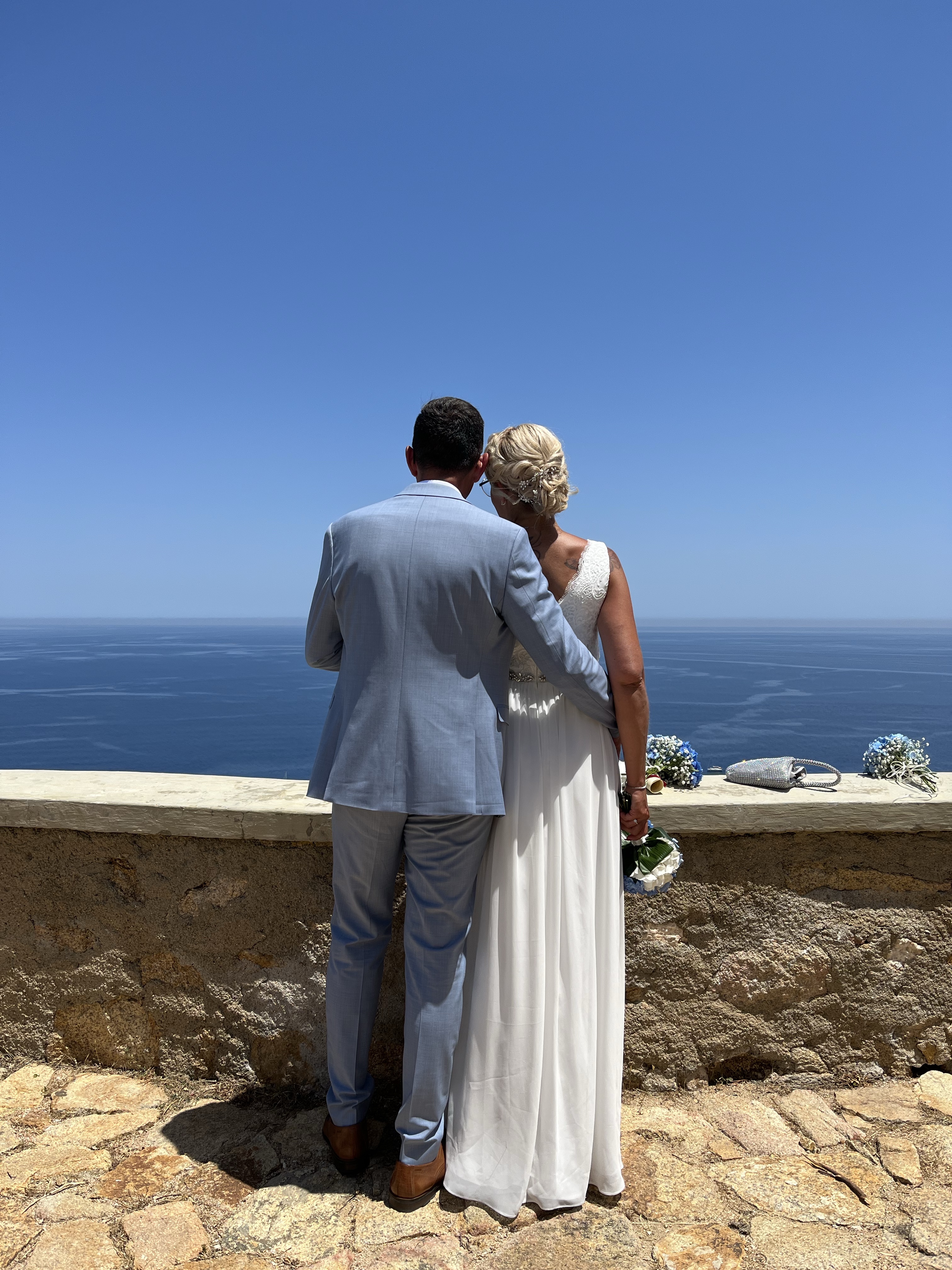 Posada, La Caletta & Santa Lucia 2022, Sardinien im Juni lockt mit Sonnenschein und Traumtemperaturen. Zeit für eine Sommerhochzeit hoch über dem Meer 💙💙 Blau in Blau und eine sanfte Brise. Unsere Traulocation für die standesamtliche Trauung ist privacy pur, ein alter Leuchtturm, hoch über dem Meer, nur das Paar, der Bürgermeister (der hier persönlich traut), die Trauzeugen.