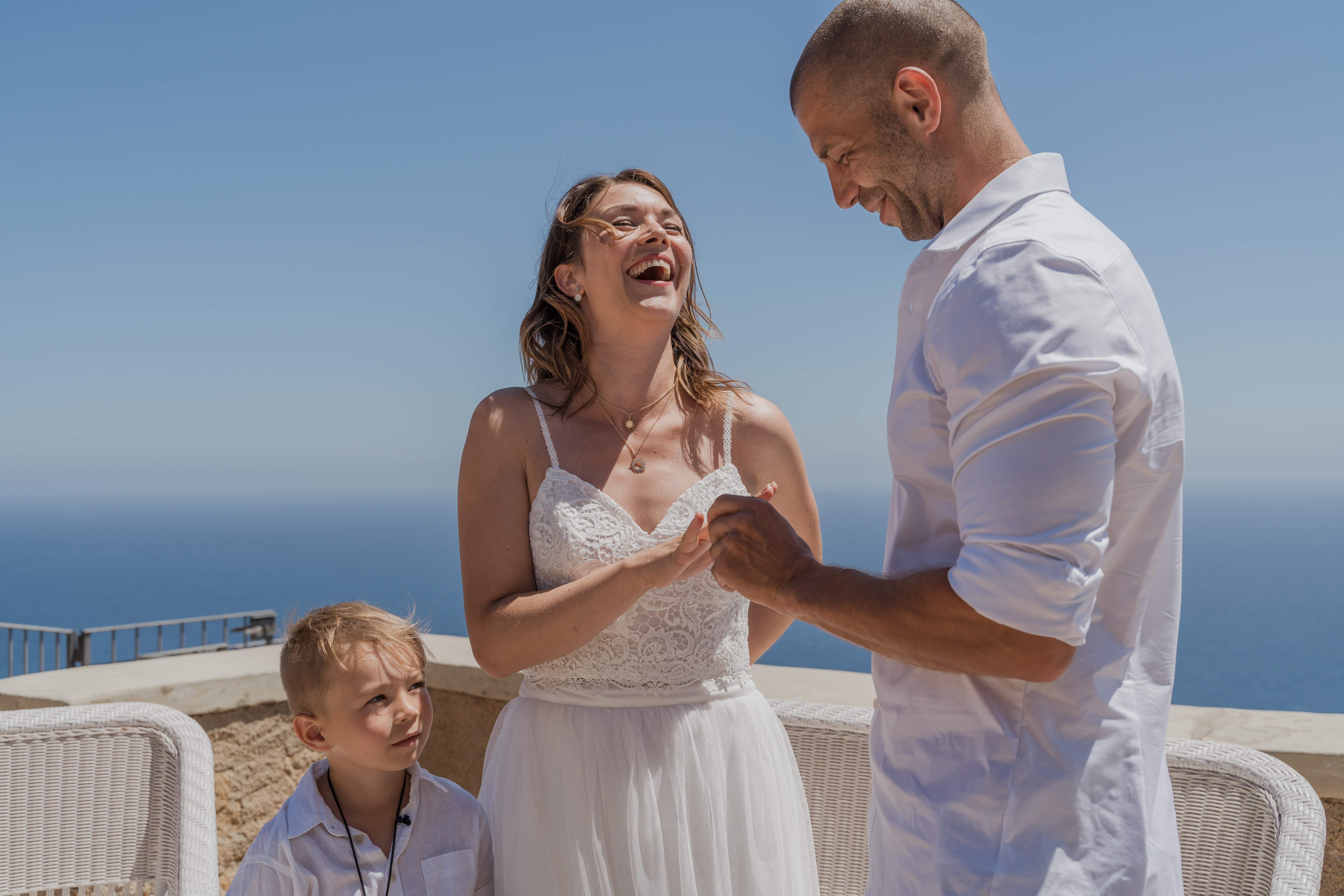 Im Camper angereist, nur mit ihren Kindern unterwegs, hoch über dem Meer trauen sich nach vielen gemeinsamen Jahren M&S in einem typischen Elopement-Wedding – Das Fotoshooting danach mit unserem Fotografen Adolfo