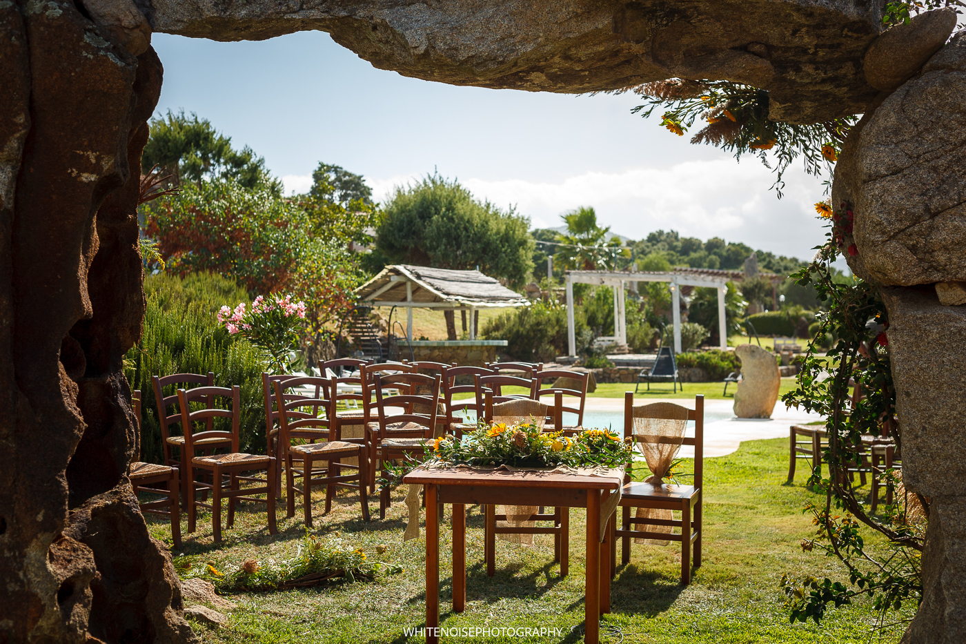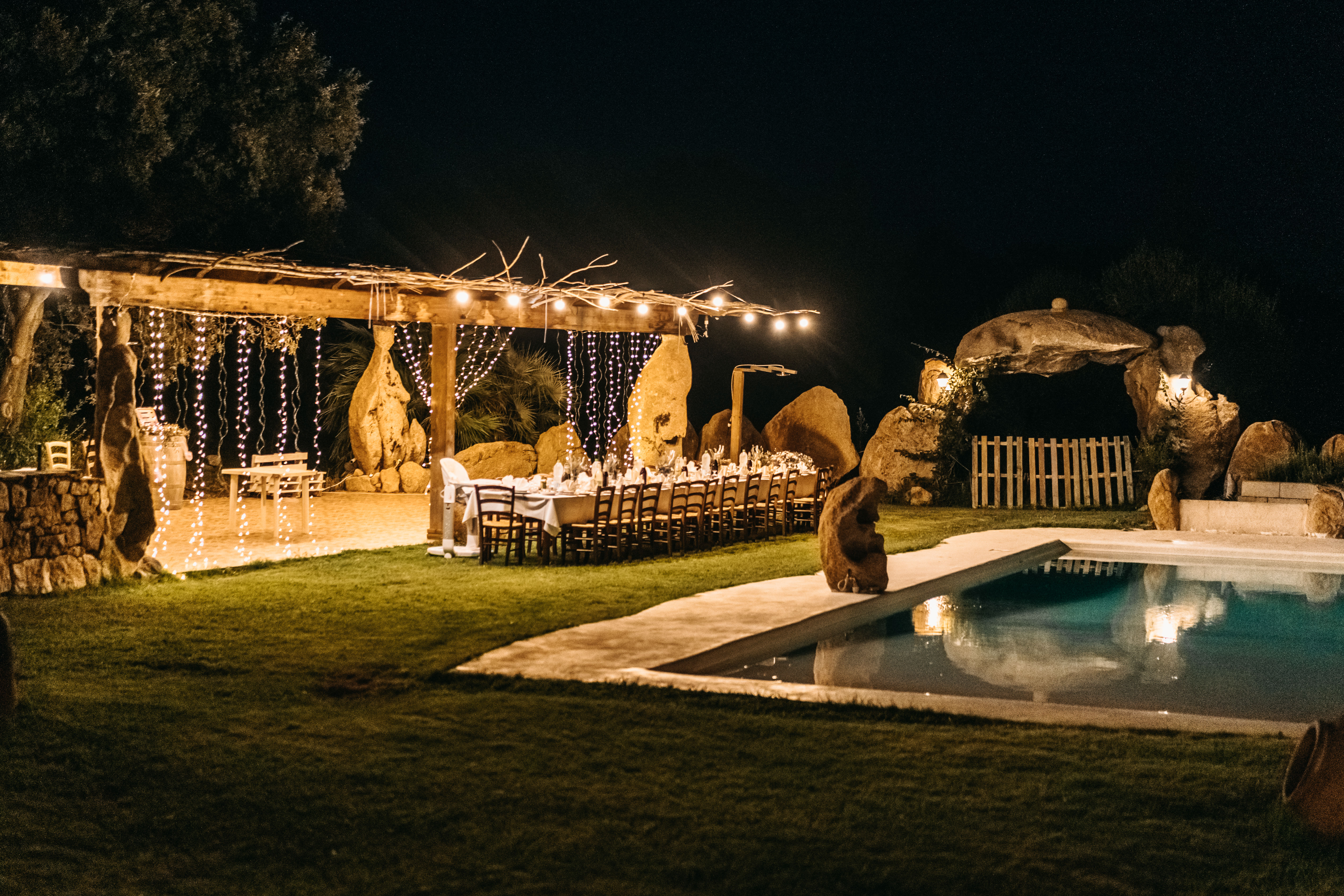 Direkt am Pool, eingerahmt vom Bogen aus uralten Granitsteinen, könnt ihr eure Zeremonie in stimmungsvoller Kulisse feiern. Besonders im Abendlicht entsteht hier eine Atmosphäre voller Romantik – perfekt für euer „Ja“ im Herzen der Gallura.