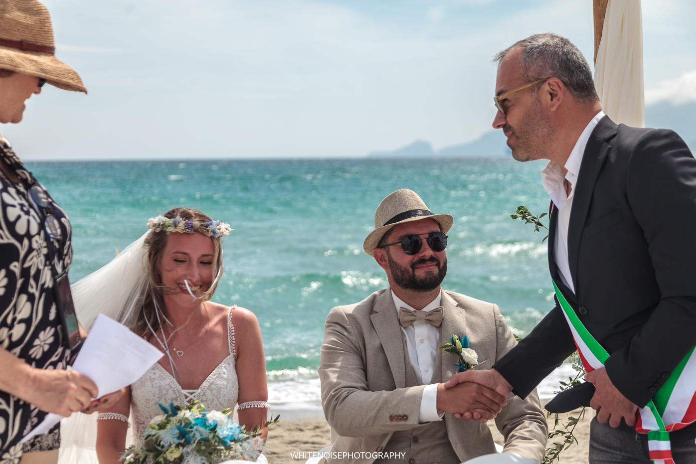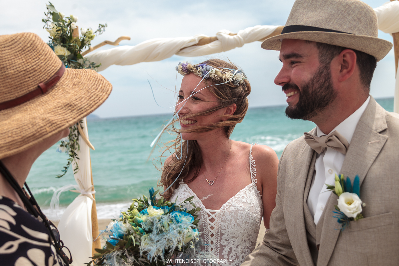 Olbia, Nordsardinien 2023 – der Juni ist da und eine sehr frühe Hochsaison mit vielen überfüllten Stränden. Romantisch am Strand standesamtlich heiraten, das war der Wunsch von F & S, einen Strand mit weniger Rummel haben wir am Ende auch gefunden. Es belohnt uns die sardische Sonne, ein bisschen Wind. Vor dem Türkisblau des sardischen Meeres haben sie sich dann vor dem Beamten das Ja-Wort gegeben. Im Anschluß mit unserem Fotografen für ein Fotoshooting in eine der versteckten Ecken der Insel. Auf hundert Jahre Ihr Lieben